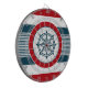 Nautical design with compass decoration in round shape on blue, red and white striped background