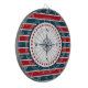Nautical design with compass decoration in round shape with stars on red, blue and white striped background