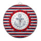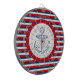 Nautical design with hand drawn anchor decoration on blue, red and white striped background