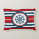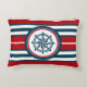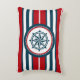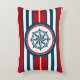 Nautical design with compass decoration in round shape on red, blue and white striped background
