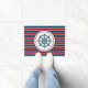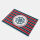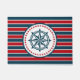 Nautical design with compass decoration in round shape with stars on red, blue and white striped background