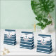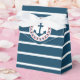 Nautical design with anchor decoration in round shape on blue and white striped background