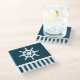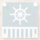 Nautical design with sailing wheel and blue and white stripes decoration on blue background