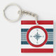 Nautical design with compass decoration in round shape on blue, red and white striped background