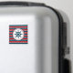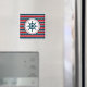 Nautical design with sailing wheel decoration in round shape with stars on red, blue and white striped background