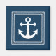 Nautical themed design with anchor decoration in striped squares on blue background
