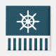 Nautical design with sailing wheel and blue and white stripes decoration on blue background