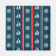 Nautical design with sailing boat and compass decoration on red, blue and white striped background