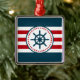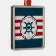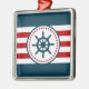 Nautical design with sailing wheel decoration in round shape with stars on red, blue and white striped background