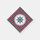 Nautical design with sailing wheel decoration in round shape with stars on red, blue and white striped background