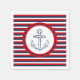 Nautical design with hand drawn anchor decoration on blue, red and white striped background