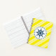 Nautical design with sailing wheel decoration on yellow and white striped background