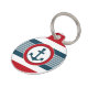 Nautical design with anchor decoration in round shape on blue, red and white striped background