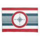 Nautical design with compass decoration in round shape on blue, red and white striped background