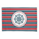 Nautical design with compass decoration in round shape with stars on red, blue and white striped background