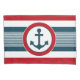 Nautical design with anchor decoration in round shape on blue, red and white striped background
