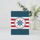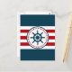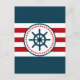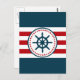 Nautical design with sailing wheel decoration in round shape with stars on red, blue and white striped background
