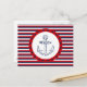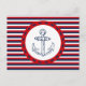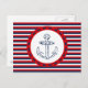 Nautical design with hand drawn anchor decoration on blue, red and white striped background