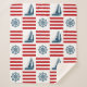 Nautical design with sailing boat and compass decoration on red and white striped background