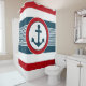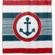 Nautical design with anchor decoration in round shape on blue, red and white striped background