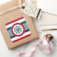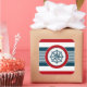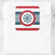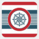 Nautical design with compass decoration in round shape on blue, red and white striped background