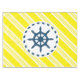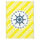 Nautical design with sailing wheel decoration on yellow and white striped background