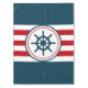 Nautical design with sailing wheel decoration in round shape with stars on red, blue and white striped background