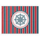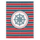 Nautical design with compass decoration in round shape with stars on red, blue and white striped background