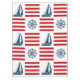 Nautical design with sailing boat and compass decoration on red and white striped background