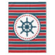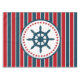 Nautical design with sailing wheel decoration in round shape with stars on red, blue and white striped background