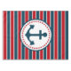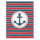 Nautical design with anchor decoration in round shape with stars on red, blue and white striped background