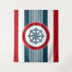 Nautical design with compass decoration in round shape on blue, red and white striped background
