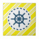 Nautical design with sailing wheel decoration on yellow and white striped background