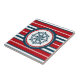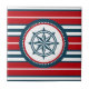 Nautical design with compass decoration in round shape on red, blue and white striped background