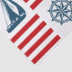 Nautical design with sailing boat and compass decoration on red and white striped background