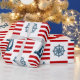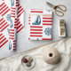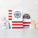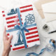 Nautical design with sailing boat and compass decoration on red and white striped background