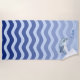 Nautical Dolphin Navy Blue Stripe Waves Beach Towel