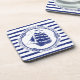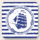 Blue nautical emblem with sailing ship on a striped background | © and ® Bigstock® - All Rights Reserved.