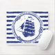 Blue nautical emblem with sailing ship on a striped background | © and ® Bigstock® - All Rights Reserved.