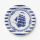 Blue nautical emblem with sailing ship on a striped background | © and ® Bigstock® - All Rights Reserved.