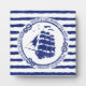 Blue nautical emblem with sailing ship on a striped background | © and ® Bigstock® - All Rights Reserved.