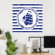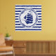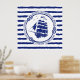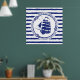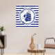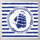 Blue nautical emblem with sailing ship on a striped background | © and ® Bigstock® - All Rights Reserved.
