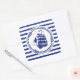 Blue nautical emblem with sailing ship on a striped background | © and ® Bigstock® - All Rights Reserved.
