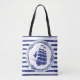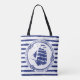 Blue nautical emblem with sailing ship on a striped background | © and ® Bigstock® - All Rights Reserved.
