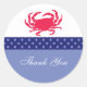 Modern and bright favour sticker. Great for an ocean theme event or beach side party. The unisex design makes it ideal for couple's shower. Features a crab in red with a blue polka dots frame. Airy and nautical look. Add your own wording. Can also be customised for a birthday party or corporate event. Matching invitation available.