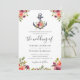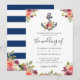 Nautical Floral Anchor Navy Blue Stripes Wedding Invitation