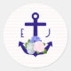 Nautical Floral Stripes Wedding Classic Round Sticker