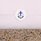 Nautical anchor and monogram framed by a lightened version of patriotic florals: white rose, blush pink peony and light blue. Preppy pink and white stripes for a summer, beach, or destination wedding event.
