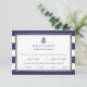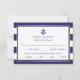 This trendy yet classic wedding rsvp card with meal choices features a navy blue nautical anchor, and a watercolor bouquet of matching peonies in a faux gold frame. Navy and white stripes decorate the border.