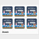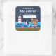 Nautical Girl Bear Pink and Navy Baby Bookplate Square Sticker